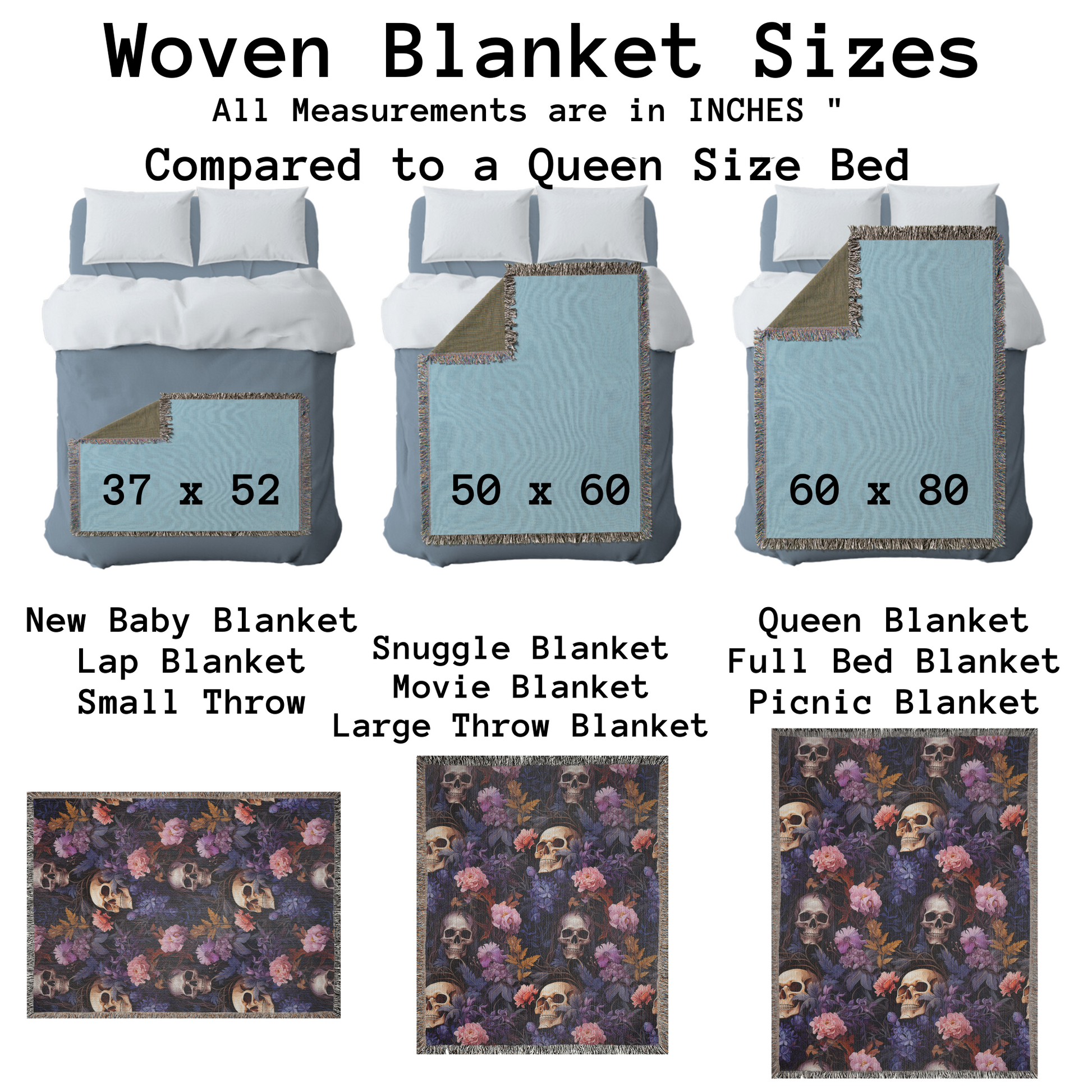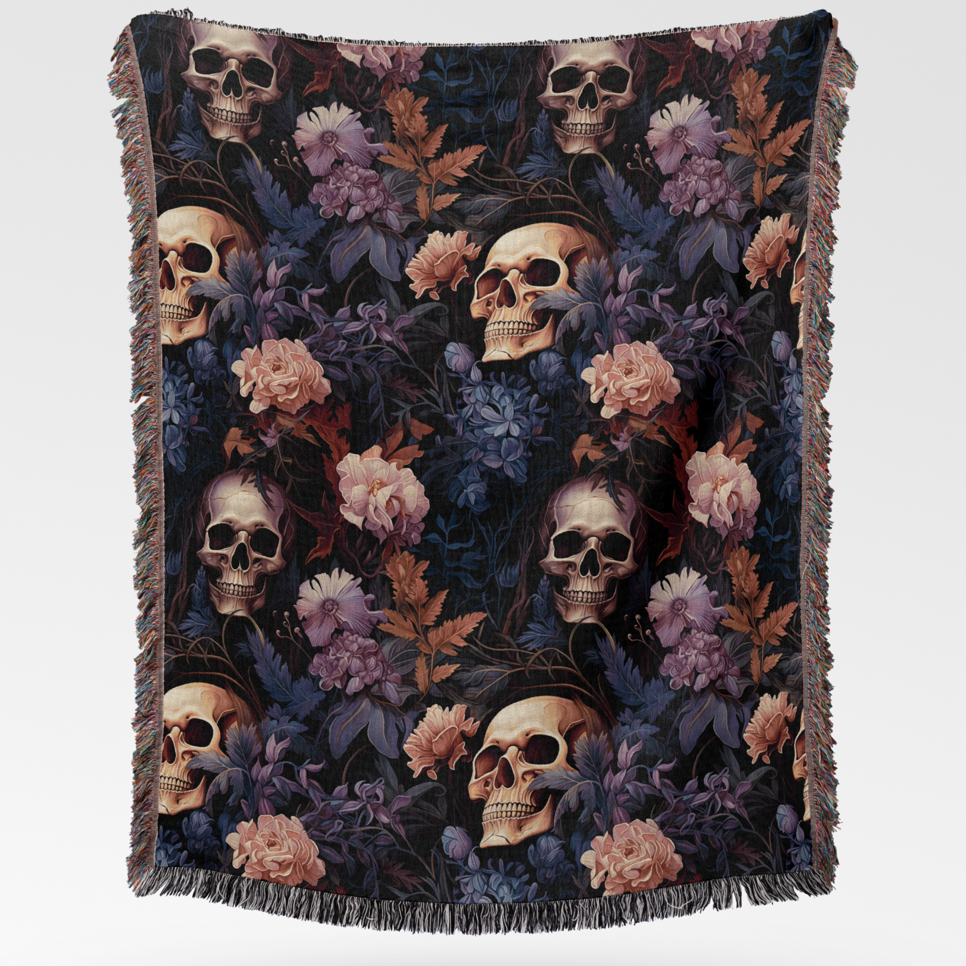 Whether you’re all about that dark cottagecore vibe, love gothic bedding, or just want to add a touch of creepy-cute charm to your space, this skull woven blanket is the perfect choice. It’s a cozy treat for the eyes and the soul, ready to make your Halloween decor truly magical. Add this quirky tapestry to your collection and let the spooky fun begin!